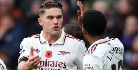 阿森纳首发:1-拉亚、12-廷伯、2-萨利巴、6-加布里埃尔、33-卡拉菲奥里(72’5-因卡皮耶、)、41-赖斯、36-苏维门迪(76’16-诺尔高)、10-埃泽(72’22-恩瓦内里)、7-萨卡、19-特罗萨德(91’49-斯凯利)、14-约克雷斯(46’23-梅里诺)。